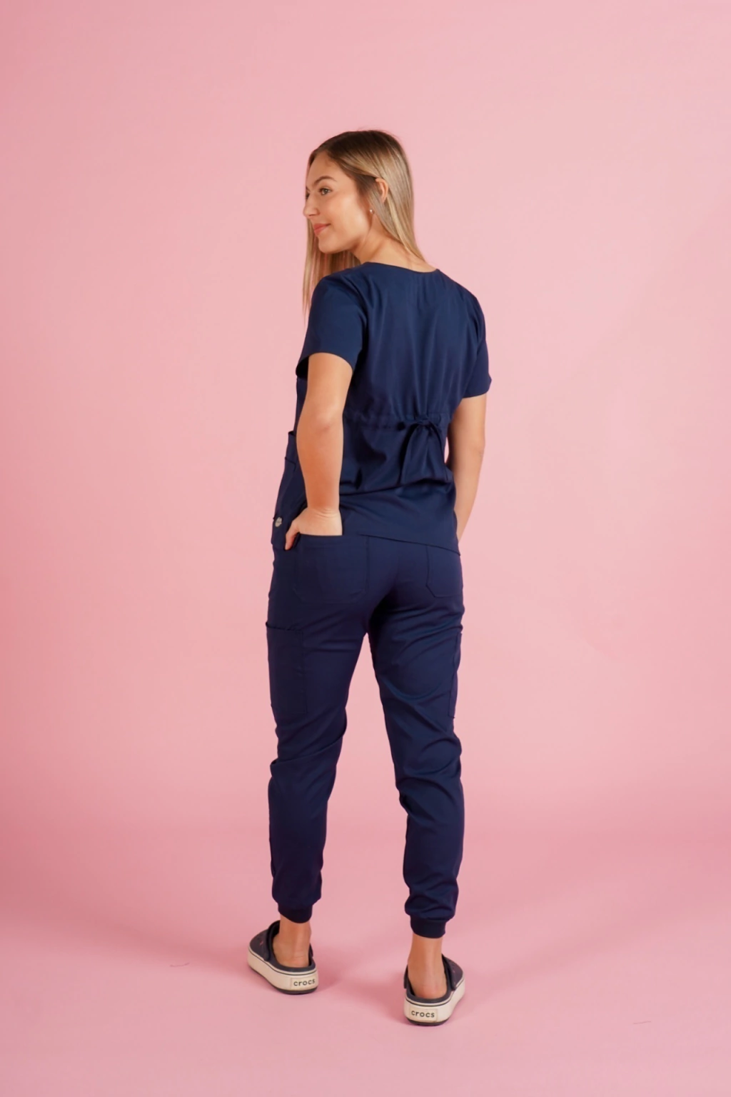 Pantalón de ambo con 6 bolsillo para que lleves de todo. Tiene cintura de rib con elástico y cinta para regular. Posee dos bolsillos laterales en el delantero, dos bolsillo en traseros, dos bolsillos cargo en los laterales izquierdo y derecho. Puño con rib en la parte inferior del pantalón